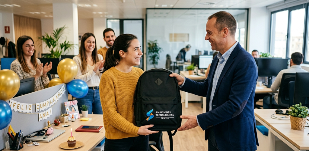 | En aniversarios o hitos relevantes | Un regalo premium (ej. una mochila corporativa de alta gama o unos auriculares) al cumplir 1, 3 o 5 años en la empresa. |