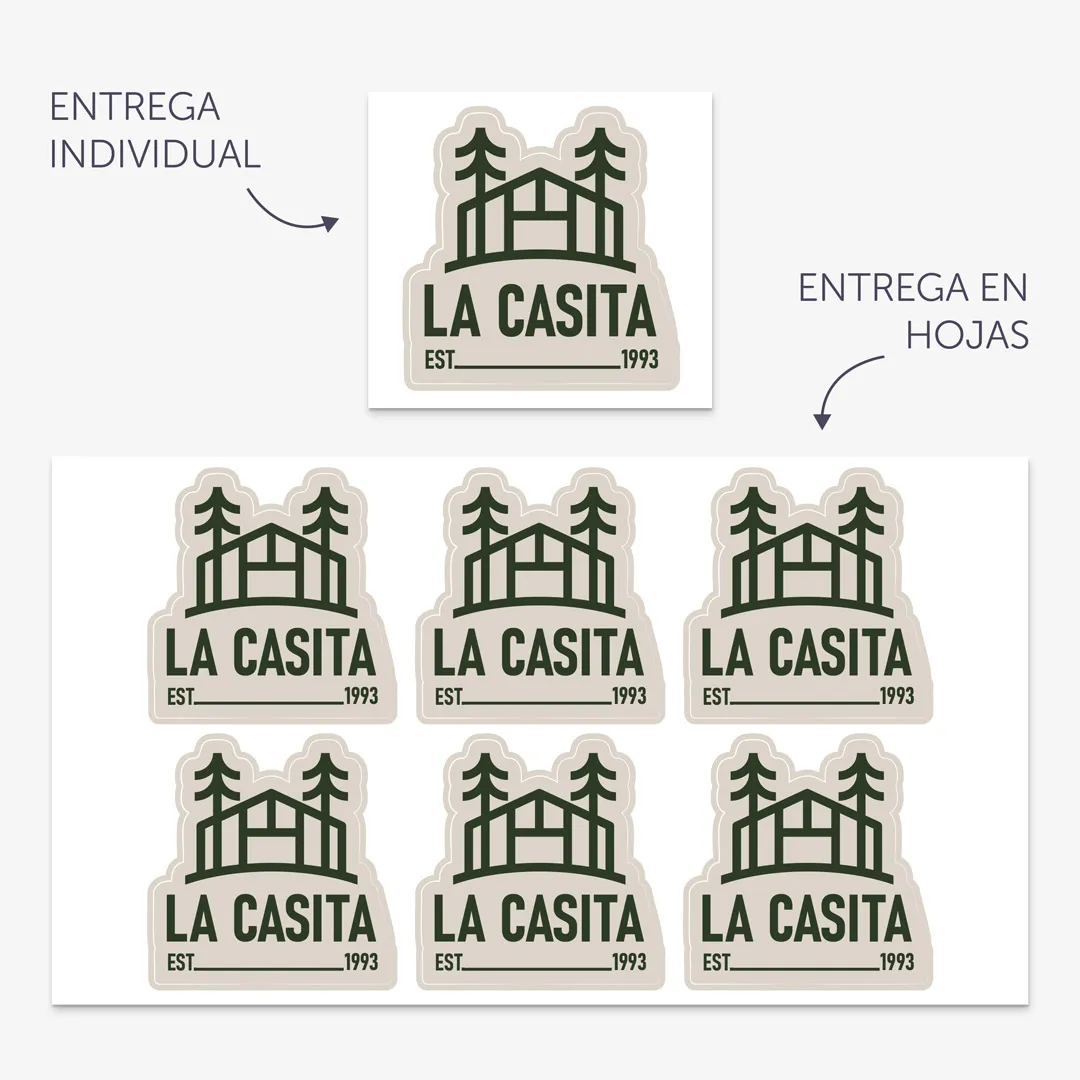 Tus pegatinas se entregan en hojas de aproximadamente 20 x 10 cms. Según el uso que quieras darles puede ser más cómodo para ti recibirlas de forma individual, de una en una. Por ejemplo, en caso que las quieras regalar. Puedes activar está opción con el botón que verás en la página de producto, después de seleccionar la medida de tus pegatinas. Esta opción está disponible a partir de 50 unidades y para etiquetas de 50 x 50 mm o superior.